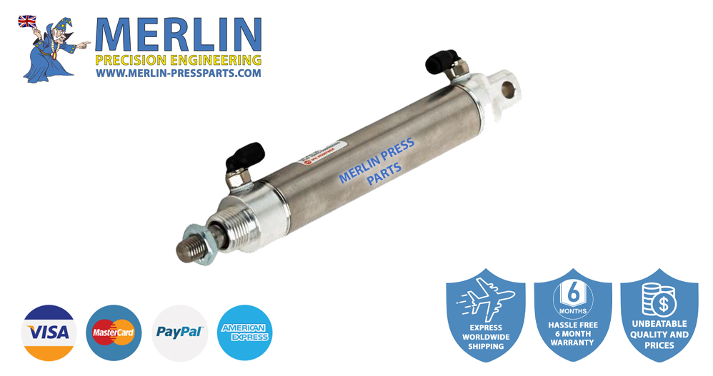 F9.334.001 Heidelberg Pneumatic Cylinder D25-H100. We stock a wide range of pneumatic parts for Heidelberg printing presses. If you are looking for high-quality or original Heidelberg printing machine parts then look no further than Merlin Press Parts. We offer industry-leading warranties and guarantees. We ship our spares for Heidelberg presses to everywhere in the world, offering express worldwide delivery with same-day-dispatch when ordered before 1 pm UK (If in stock).