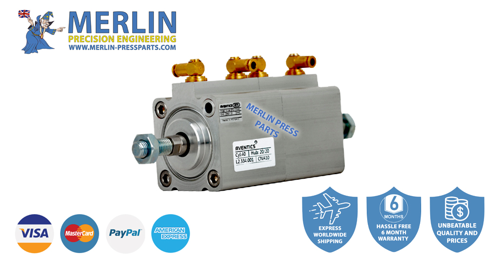 L2.334.001 Heidelberg Pneumatic Cylinder. We stock a wide range of pneumatic parts for Heidelberg printing presses. If you are looking for high-quality or original Heidelberg printing machine parts then look no further than Merlin Press Parts. We offer industry-leading warranties and guarantees. We ship our spares for Heidelberg presses to everywhere in the world, offering express worldwide delivery with same-day-dispatch when ordered before 1 pm UK (If in stock).