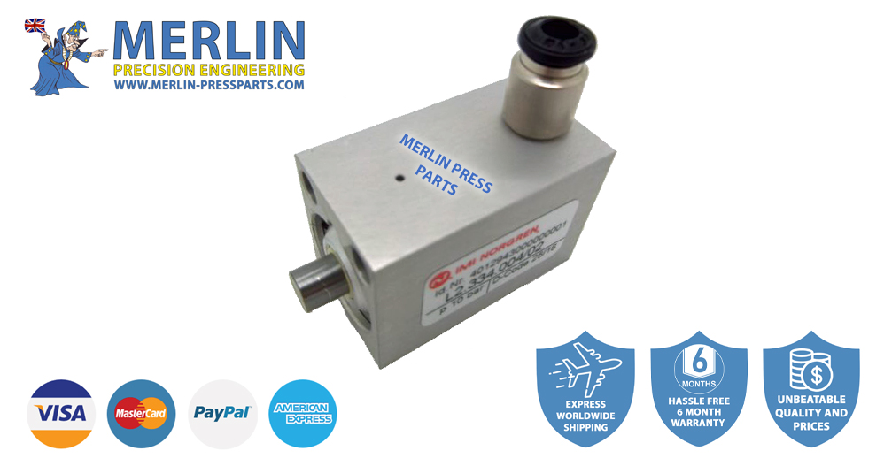 L2.334.004 Heidelberg Cylinder Valve. We stock a wide range of pneumatic parts for Heidelberg printing presses. If you are looking for high-quality or original Heidelberg printing machine parts then look no further than Merlin Press Parts. We offer industry-leading warranties and guarantees. We ship our spares for Heidelberg presses to everywhere in the world, offering express worldwide delivery with same-day-dispatch when ordered before 1 pm UK (If in stock).
