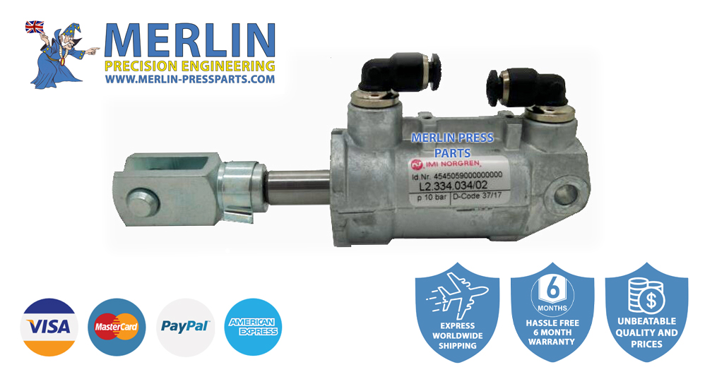 L2.334.034 Heidelberg Pneumatic Cylinder D25 H25. We stock a wide range of pneumatic parts for Heidelberg printing presses. If you are looking for high-quality or original Heidelberg printing machine parts then look no further than Merlin Press Parts. We offer industry-leading warranties and guarantees. We ship our spares for Heidelberg presses to everywhere in the world, offering express worldwide delivery with same-day-dispatch when ordered before 1 pm UK (If in stock).